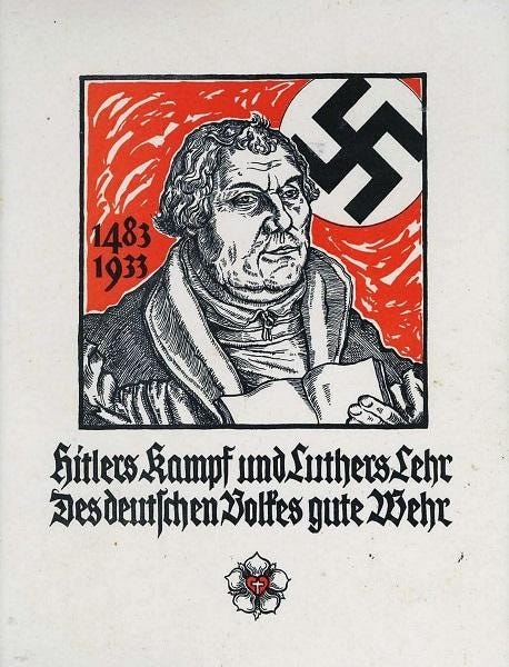 The Nazis were God-fearing Christians who followed the teachings of the same Martin Luther that you follow.