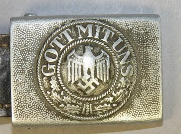 That’s a typical Nazi uniform belt buckle, engraved with the words “God is with us”