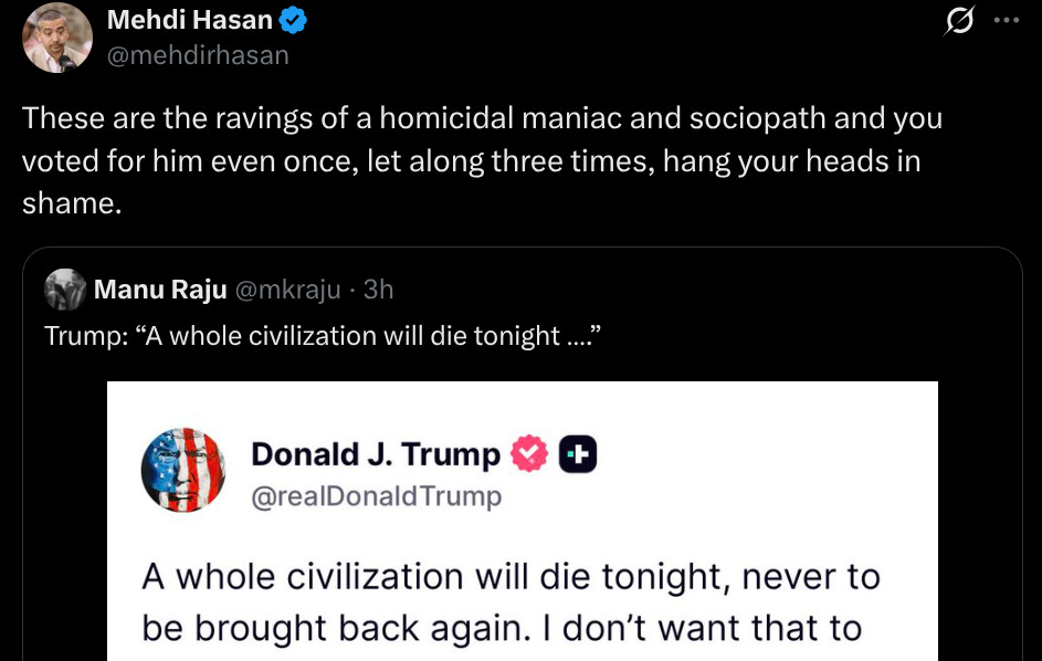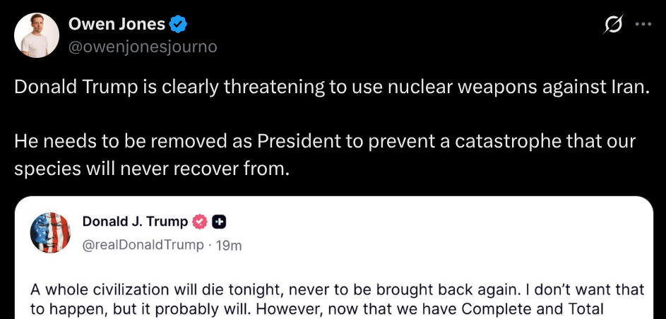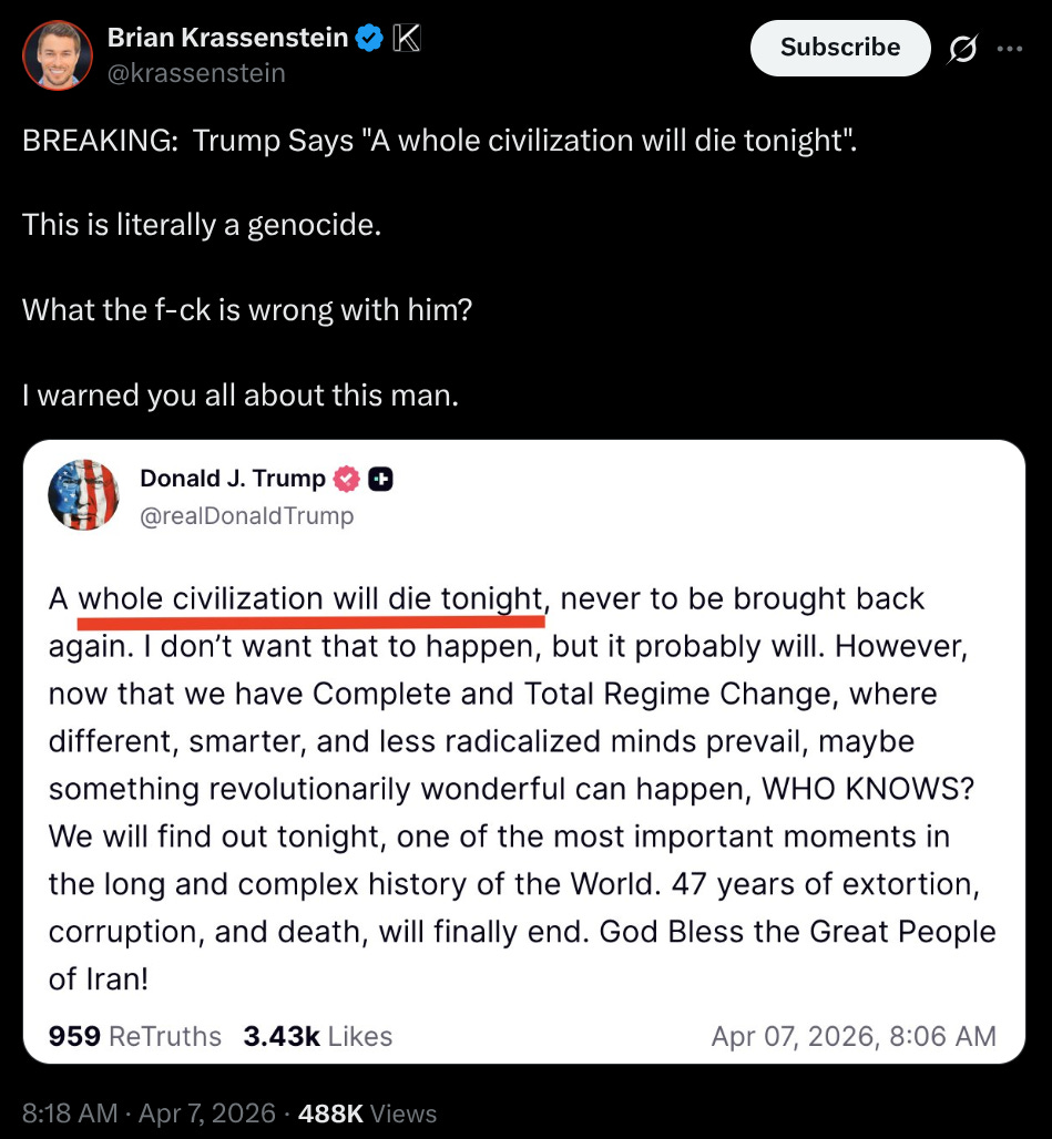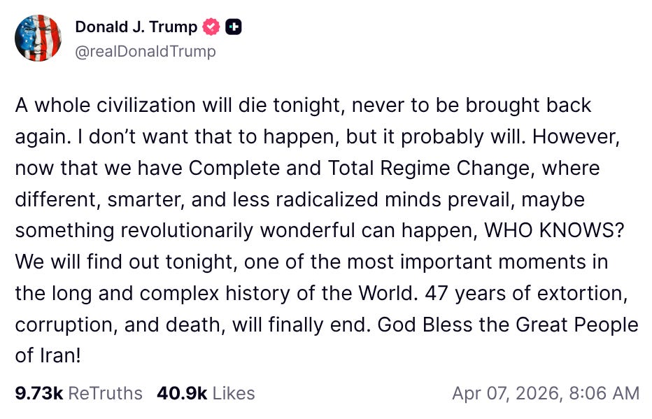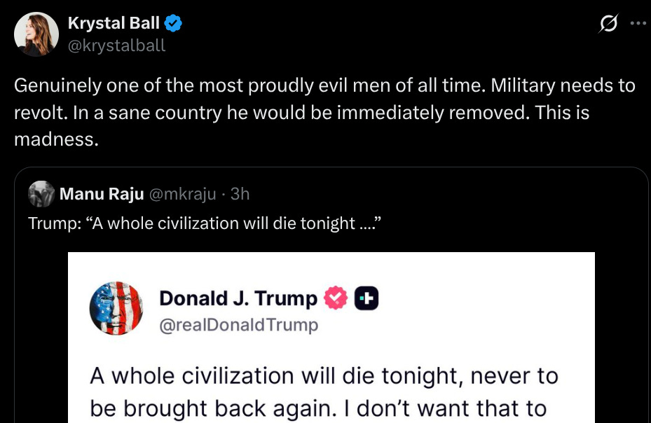 That would be the best outcome as Congress clearly fought and sold sits complicit in our own destruction. The worst outcome because he loves Hitler so much is that he blows up the world to hide the Trump Epstein, truth to hide his unpopularity and to kill off everyone because he’s not the sort that will go alone. Hitler also wanted to do this. He wanted to blow up the world if he couldn’t own it and control it. If that happens, nobody will be talking.