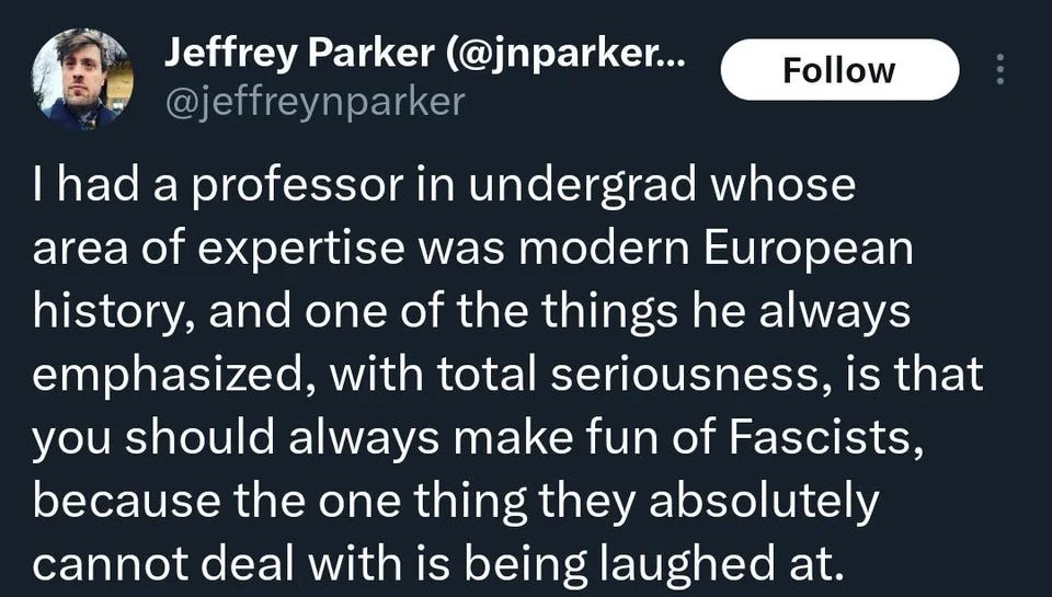Fascists hate to be mocked, because it destroys the illusion of their power.