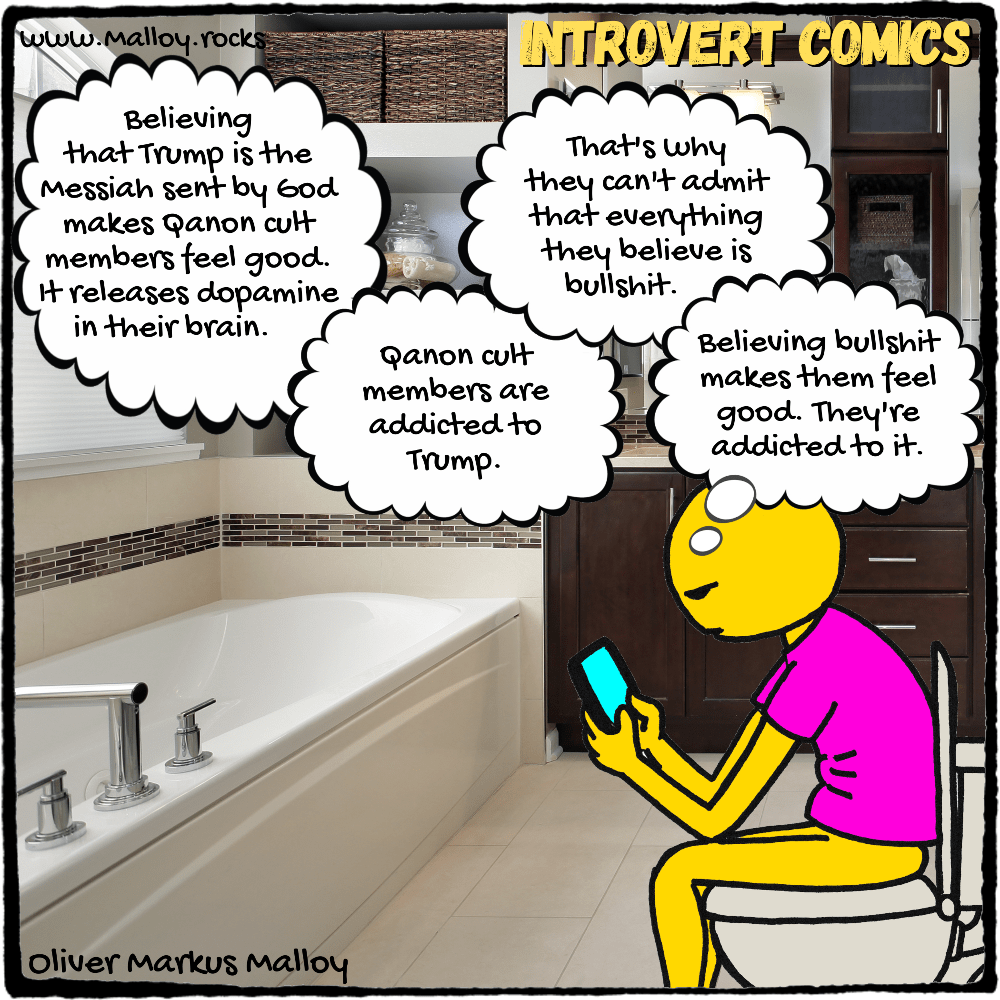 That’s why they behave like cult members and they have a complete meltdown when you mock Trump and diminish his divine dopamine-rush-giving image.