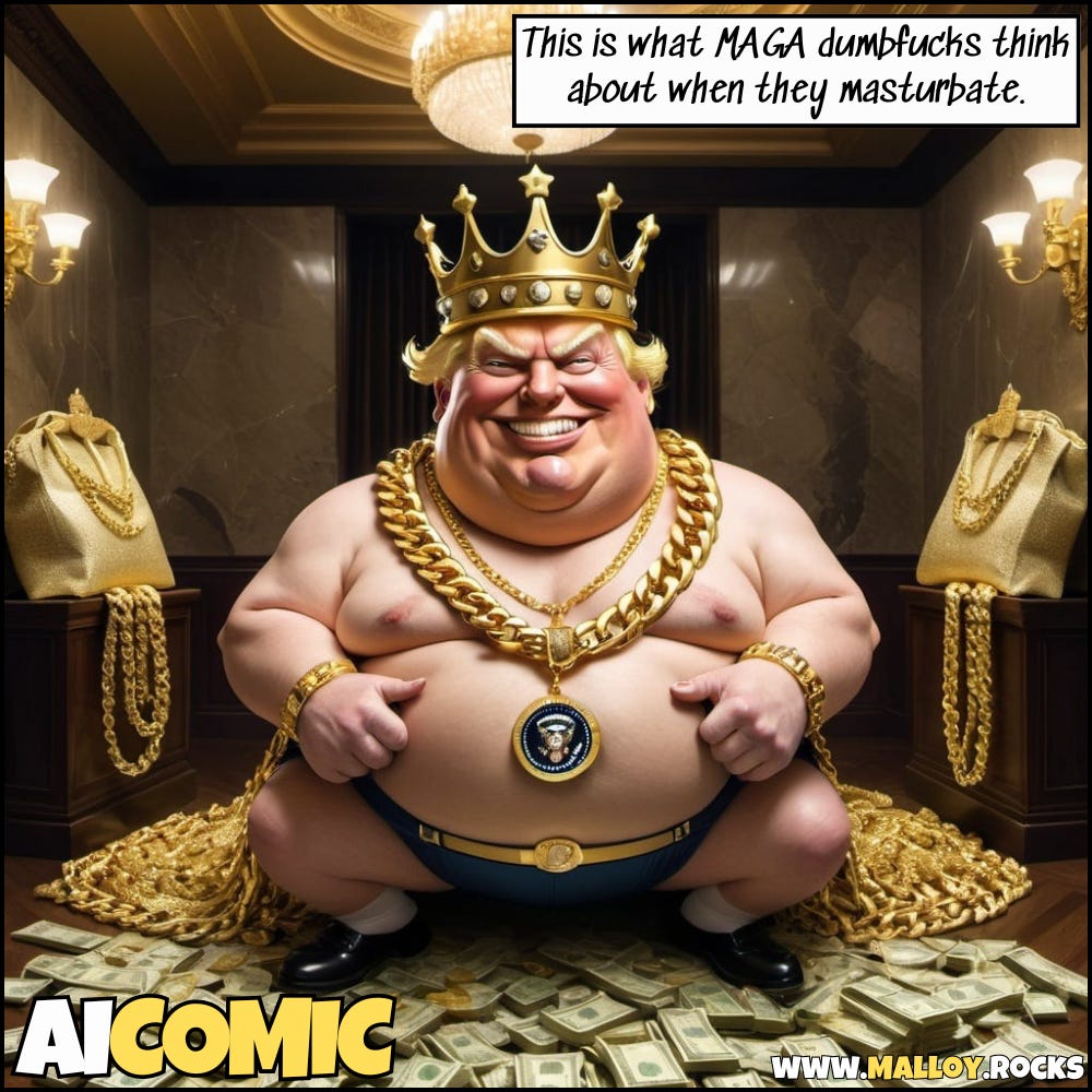 MAGA dumbfucks get big mad when you mention Dementia Donnie’s diapers.
