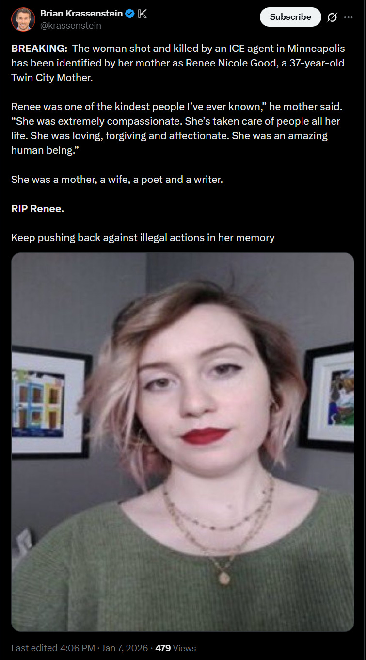 Renee Nicole Good won’t be the last innocent American being murdered by Trump’s ICE Gestapo.