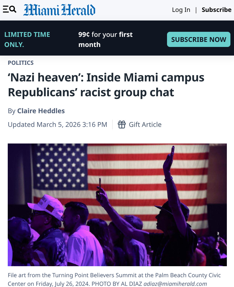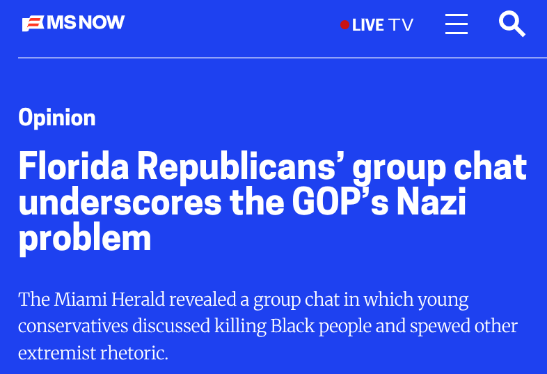 Meanwhile in Miami, a group of MAGA Republicans just got caught idolizing Hitler, spreading calls for genocide of minorities, racist slurs, and Nazi propaganda.